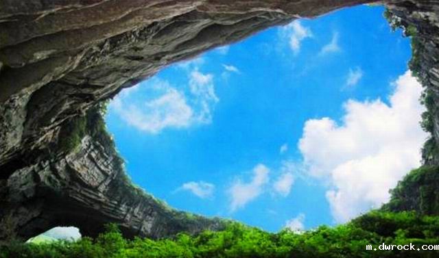 月岩风景区位于湖南省永州市道县清塘镇,地理坐标为东经111°17′—111°56′,北纬25°09′—25°50′。月岩有东西两个洞门,东洞门长65米,宽40米;西洞门长105米,宽60米,因东西两门贯通,故又称“穿岩”。一到洞口,宛若身临城阙,极具雄伟森严之感。步入洞门数十步,顿觉宽敞若广庭,月岩的美,在于大自然的巧夺天工。一般的喀斯特地形都是在地下,而月岩则在地面突现屹立出来。月岩的奇,在于一岭三洞,一洞三月,天光透入岩中,竟成三个“月亮”,疑似鬼斧神工,独特而曼妙。置身洞中,如此近距离与月岩接触,更能懂“月岩”之名由来的涵义。形态从东门进,抬头望天,天如一弯新月。前进一步,天上的月就丰满一分;再走一步,那月又丰满一分。到东门和西门的正中间仰望,蓝天当顶,岩形浑圆,此刻空顶之空圈更宛如一轮满月悬空,素雅高洁,唯美至极。随着游人移动的步伐,次第变换出的“上弦、满月、下弦”美姿,是溶洞中罕见的奇观。洞壁也成一景,景象十分迷人,怪石林立,境幽石奇,有如猛龙蜿蜒的,有似乌龟蹒跚的,有若凤凰翱翔的。满壁上灌木倒悬,千姿百态,野草茂盛,郁郁葱葱。行走间,不时有鸟类、蝙蝠飞来转去,鸣声唧唧,妙趣横生。岩洞南壁有“仙人床”、石幔、“仙人靴”、“圣水”,北壁有“仙人田”、石笋等。偶然抬头,空空的洞顶,一眼便能见到蔚蓝天穹,温暖日光直照洞内,身上落满斑驳光影的瞬间,一种怅然豁达感油然而生。