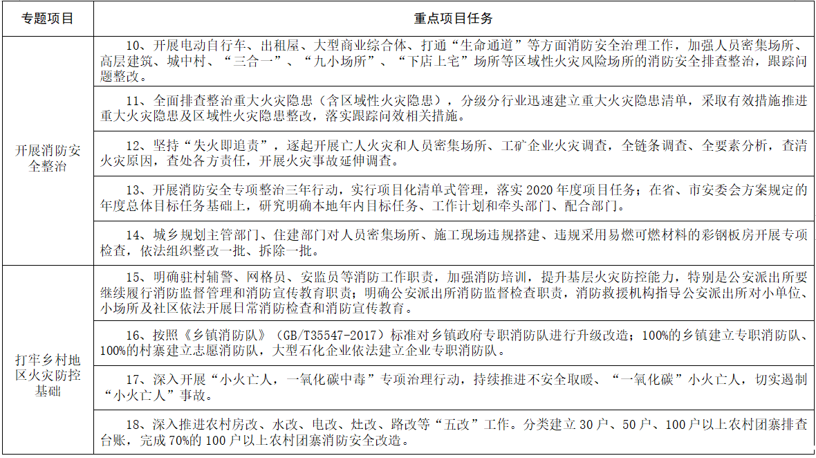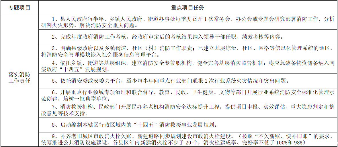 道县乡镇人民政府、街道办事处消防重点工作目标任务清单