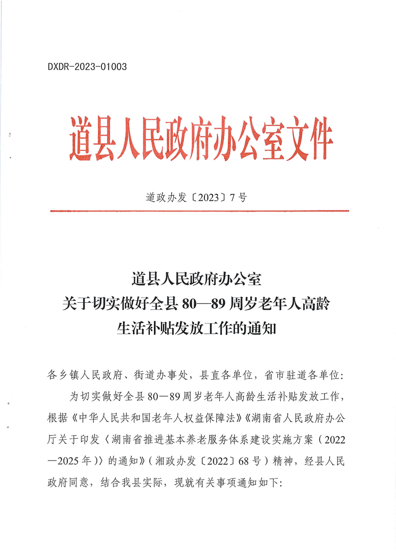 道县民政局对《关于切实做好全县80-90周岁老年人高龄生活补贴发放工作的通知》的政策解读