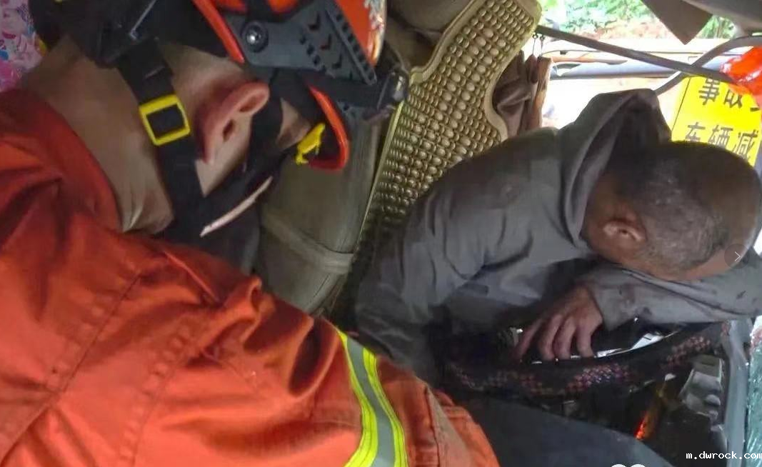 了解情况后,消防救援人员深入驾驶室内,清理杂物,使用液压扩张器对驾驶室进行扩张,撑开夹住司机腿部的驾驶室,成功将被困司机救出,并送上救护车进行治疗。