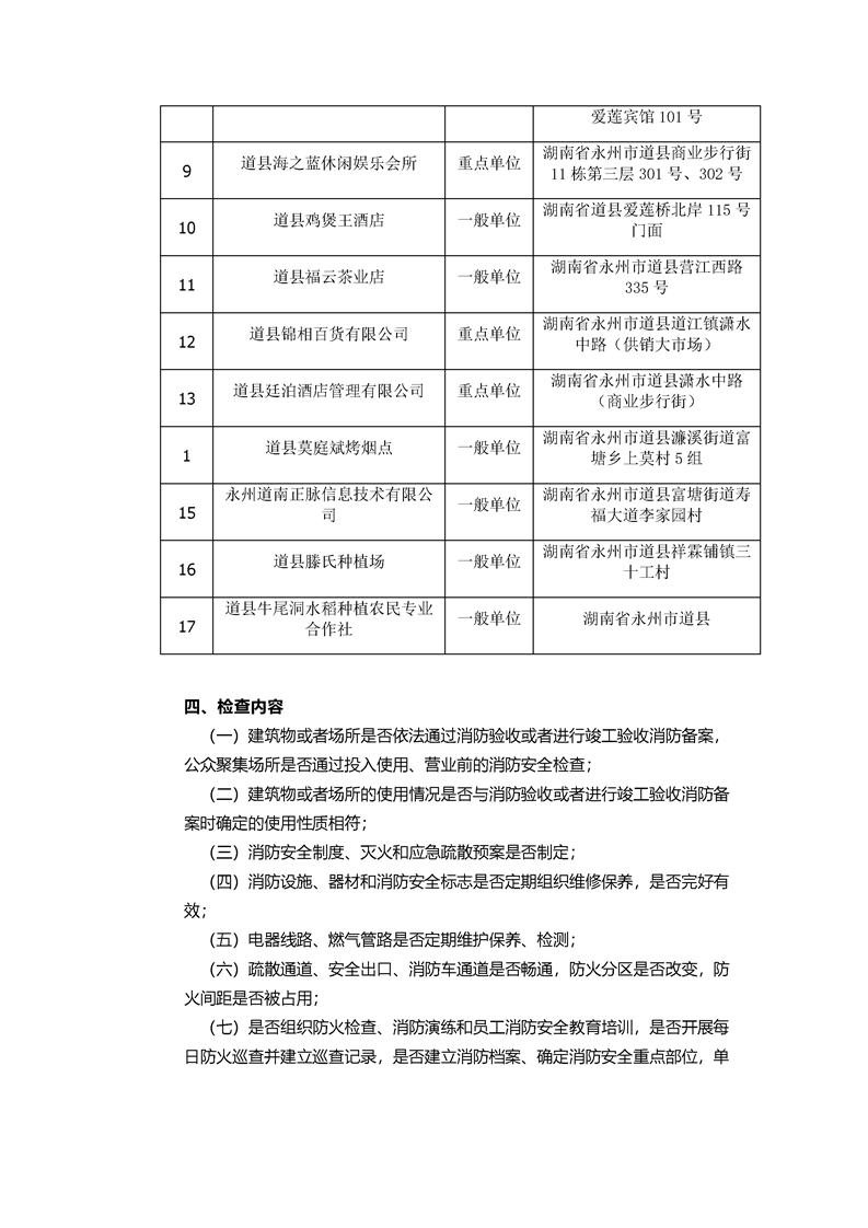 2025年1月份“双随机、一公开”消防监督检查对象公示