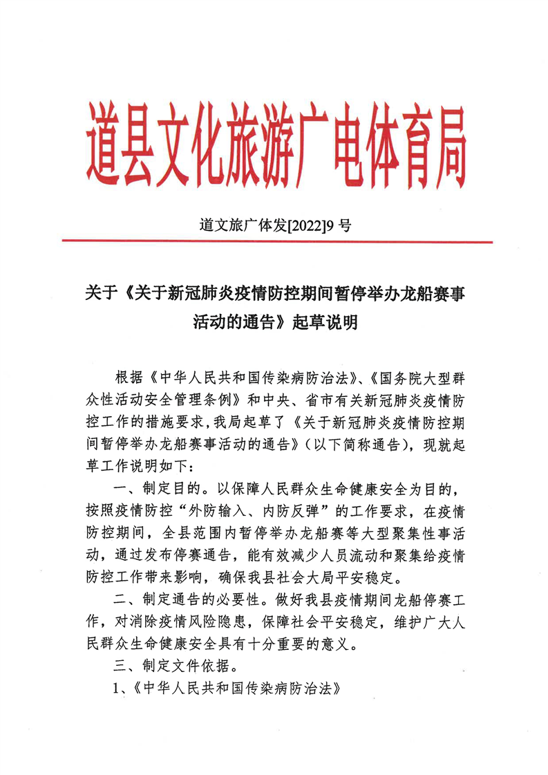 关于《关于新冠肺炎疫情防控期间暂停举办龙船赛事活动的通告》起草说明