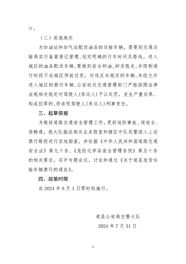 道县公安局交警大队关于《关于道县危货运输车辆禁行的通告》的政策解读