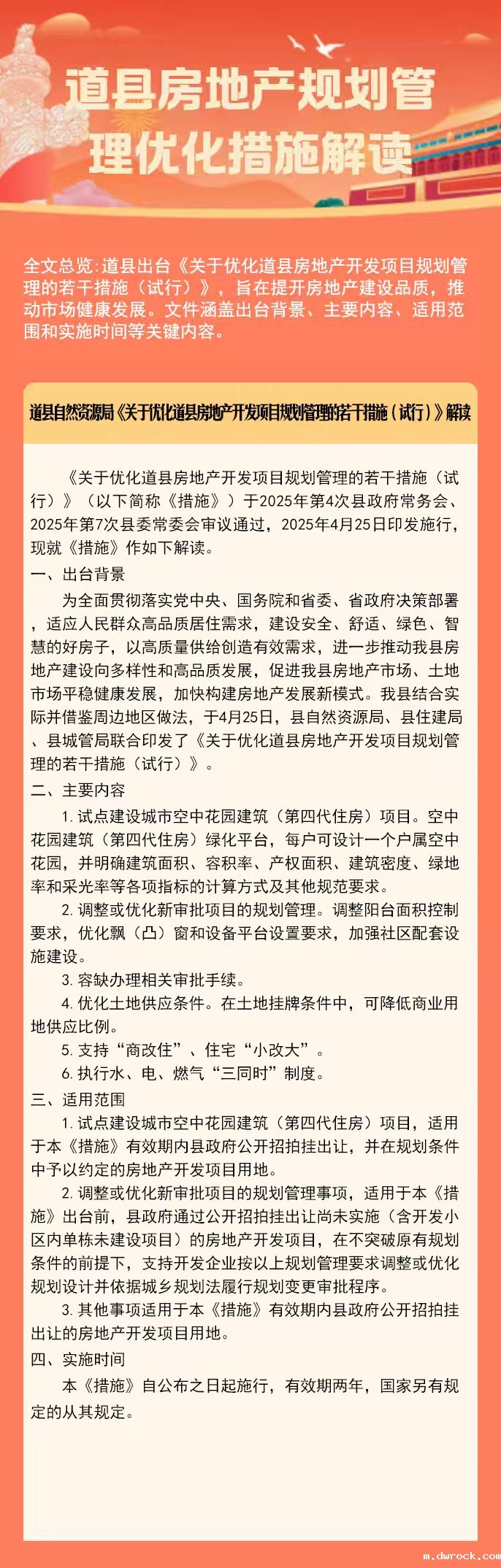 道县自然资源局关于《关于优化道县房地产开发项目规划管理的若干措施(试行)》的政策解读