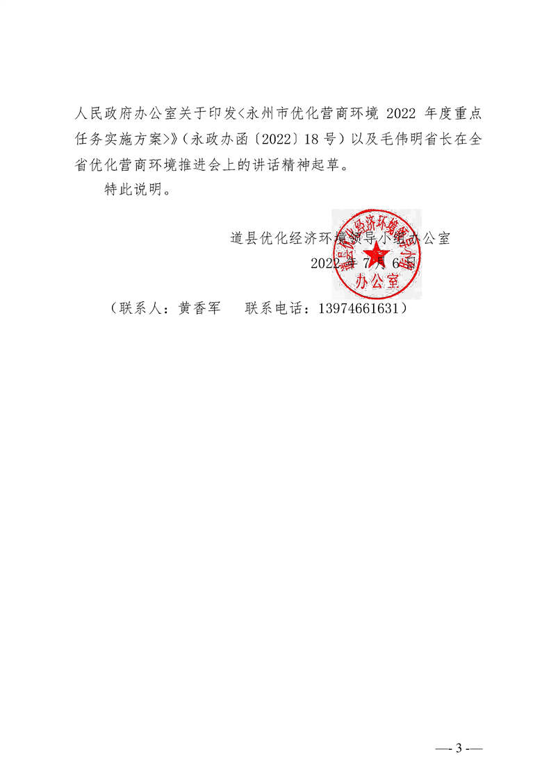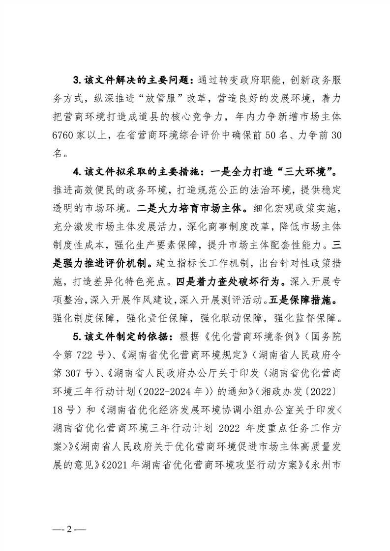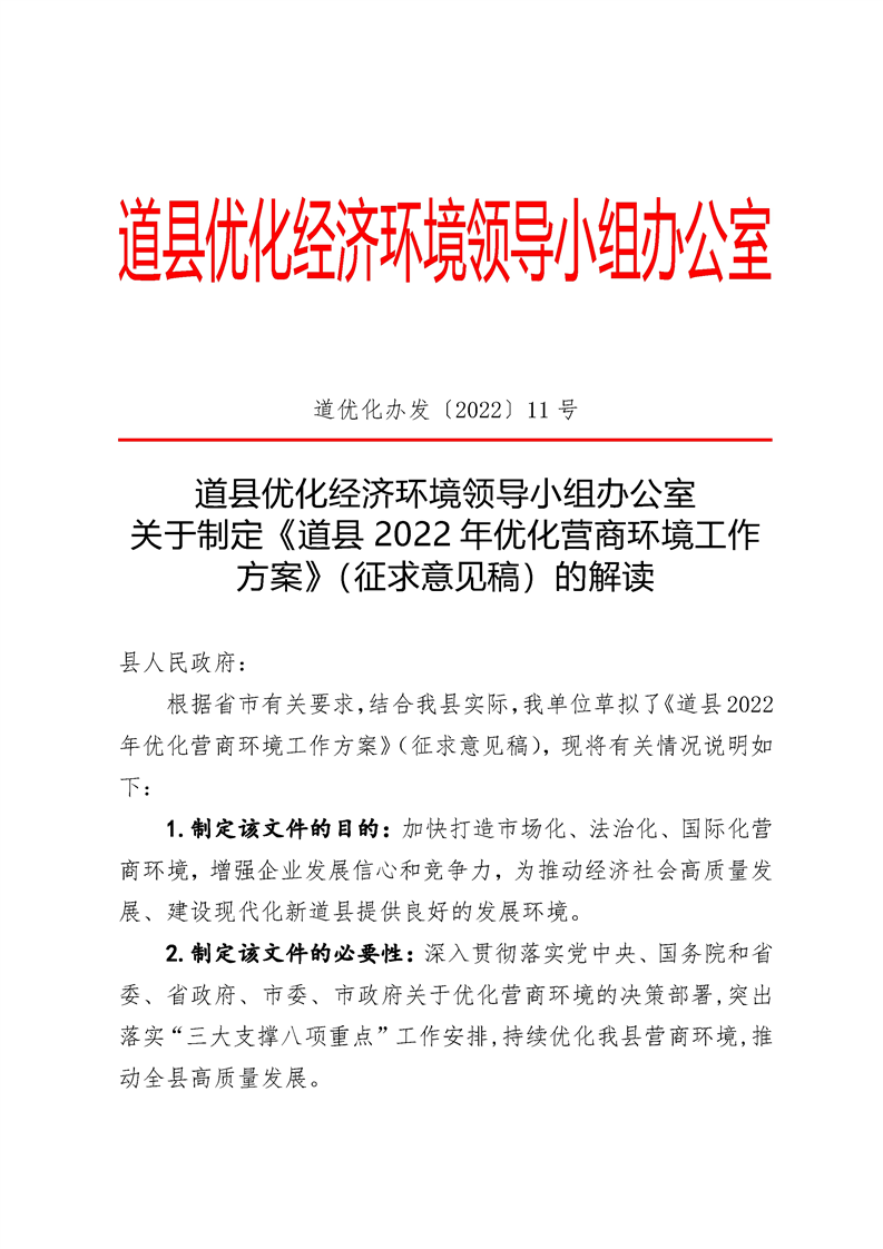 关于制定《道县2022年优化营商环境工作方案》(征求意见稿)的解读