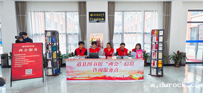 为充分发挥图书馆的信息服务职能,满足“两会”代表、委员的信息需求,道县政务公开办、道县图书馆在大会现场设立“两会”信息服务点,为代表委员们提供免费办证、图书借阅、公众号关注、政务信息咨询等多样化服务,同时宣传全省统一的“掌上办事”总入口——“湘易办”app。现场放置了歌德电子借阅机,提供电子书下载指导服务,极大地满足了他们对数字化阅读和随时随地获取文化信息的需求。同时,免费发放了道县图书馆精心编制的 “两会”专题文献备受欢迎。