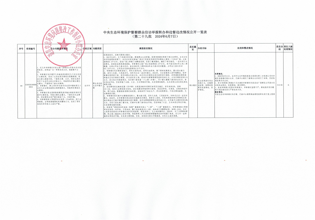 (第二十九批)中央环保督察边督边改公开情况