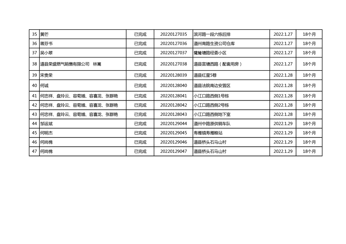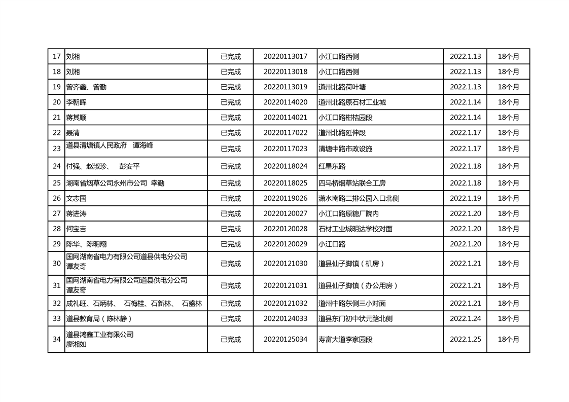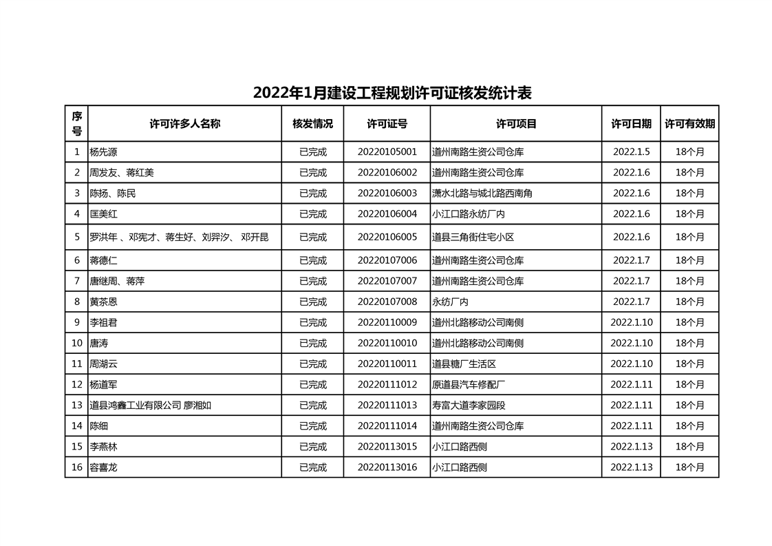 2022年1月建设工程规划许可证核发统计表