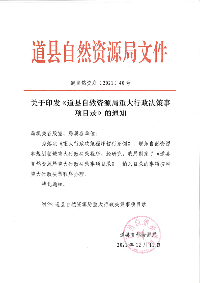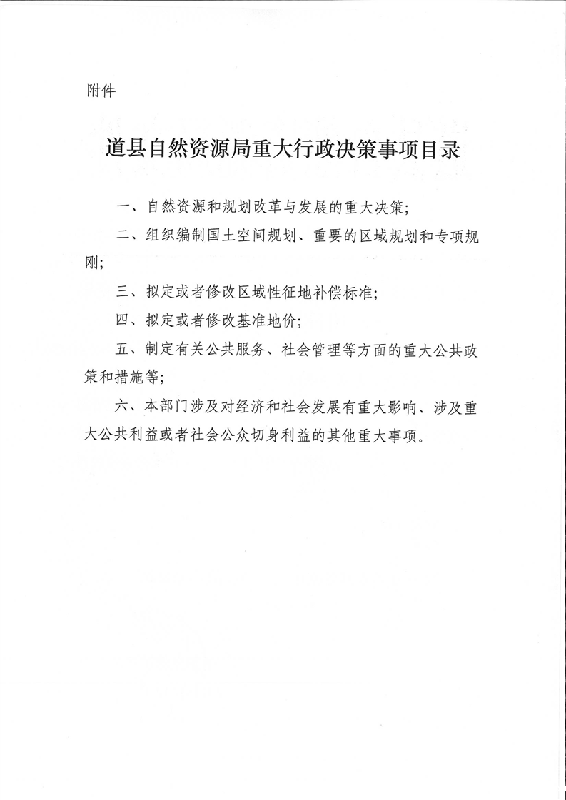 关于印发《道县自然资源局重大行政决策事项目录》的通知