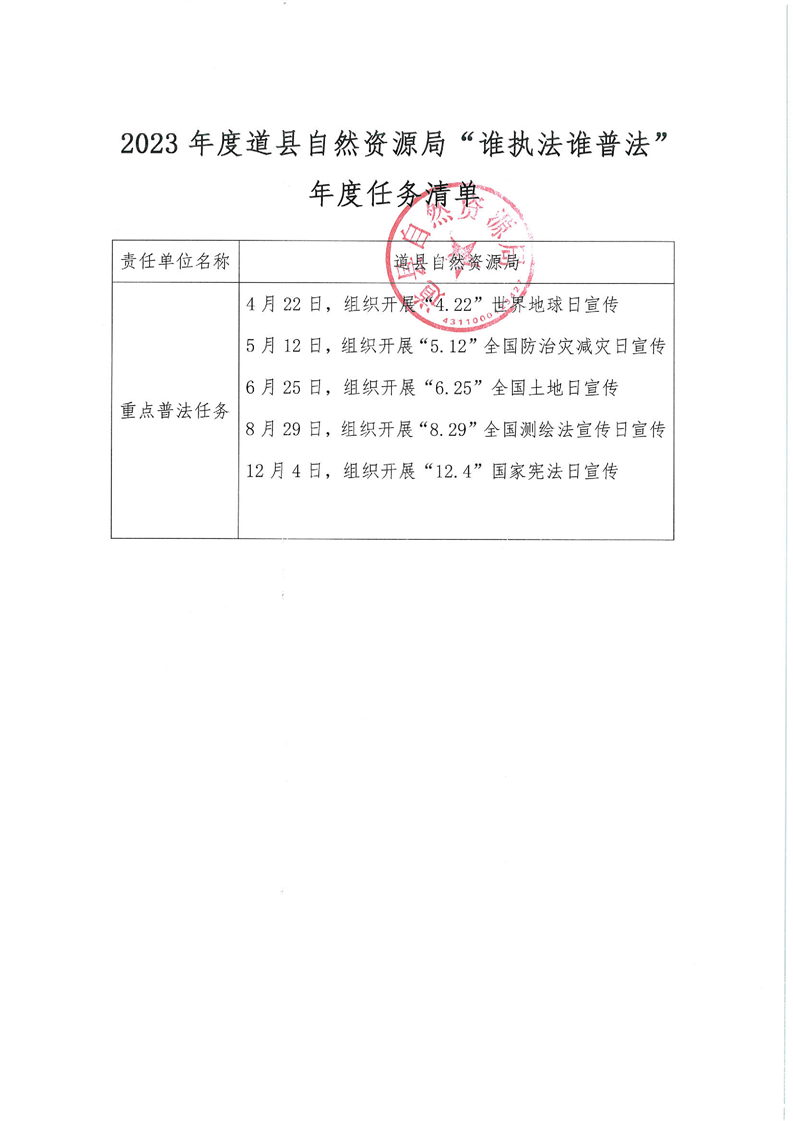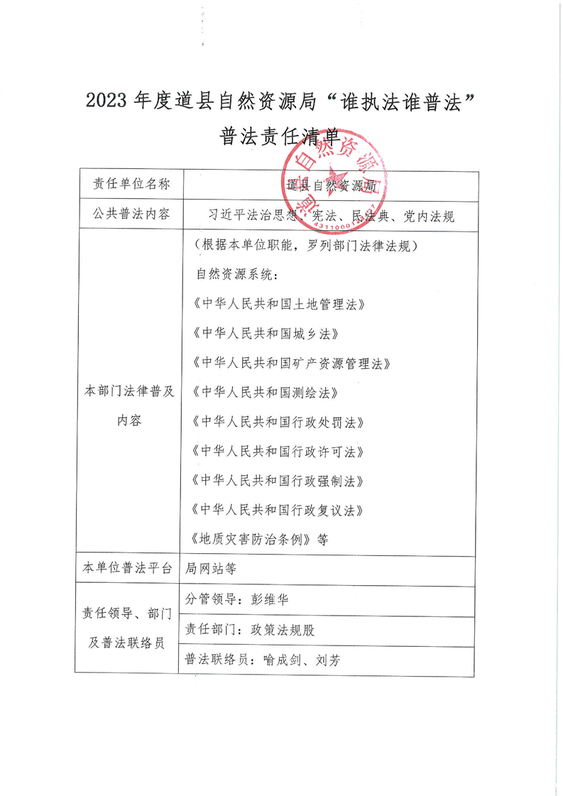 2023年度道县自然资源局“谁执法谁普法”普法责任清单