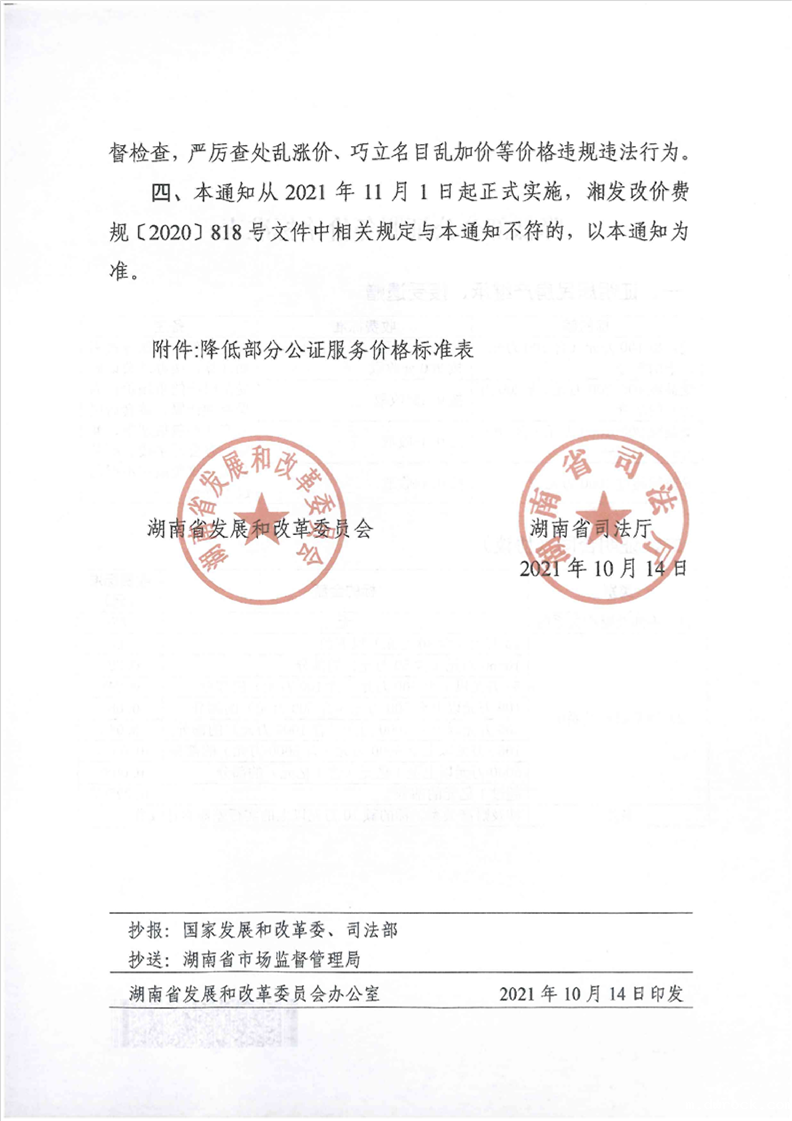 关于进一步完善我省公证服务价格管理的通知(湘发改价费规〔2021〕799号)
