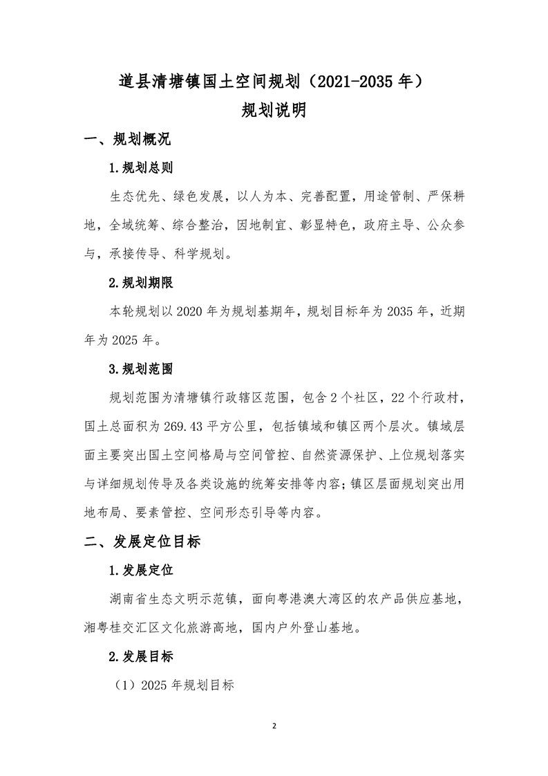 《道县清塘镇国土空间规划(2021—2035年)》公示说明