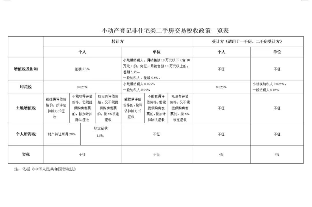 道县不动产登记二手房(住宅类、非住宅类)交易税收政策